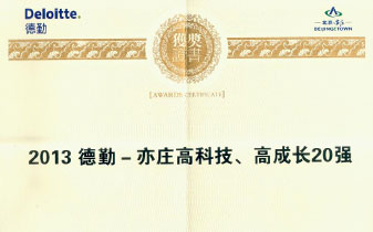2013年德勤-亦莊高科技、高成長(zhǎng)20強(qiáng)證書