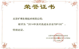 2014中關(guān)村高成長(zhǎng)企業(yè)TOP100證書