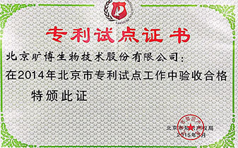 北京市專利試點(diǎn)企業(yè)驗(yàn)收通過(guò)證書